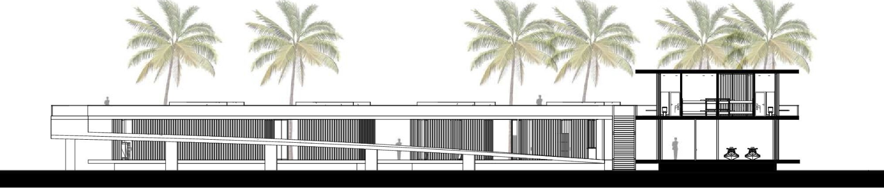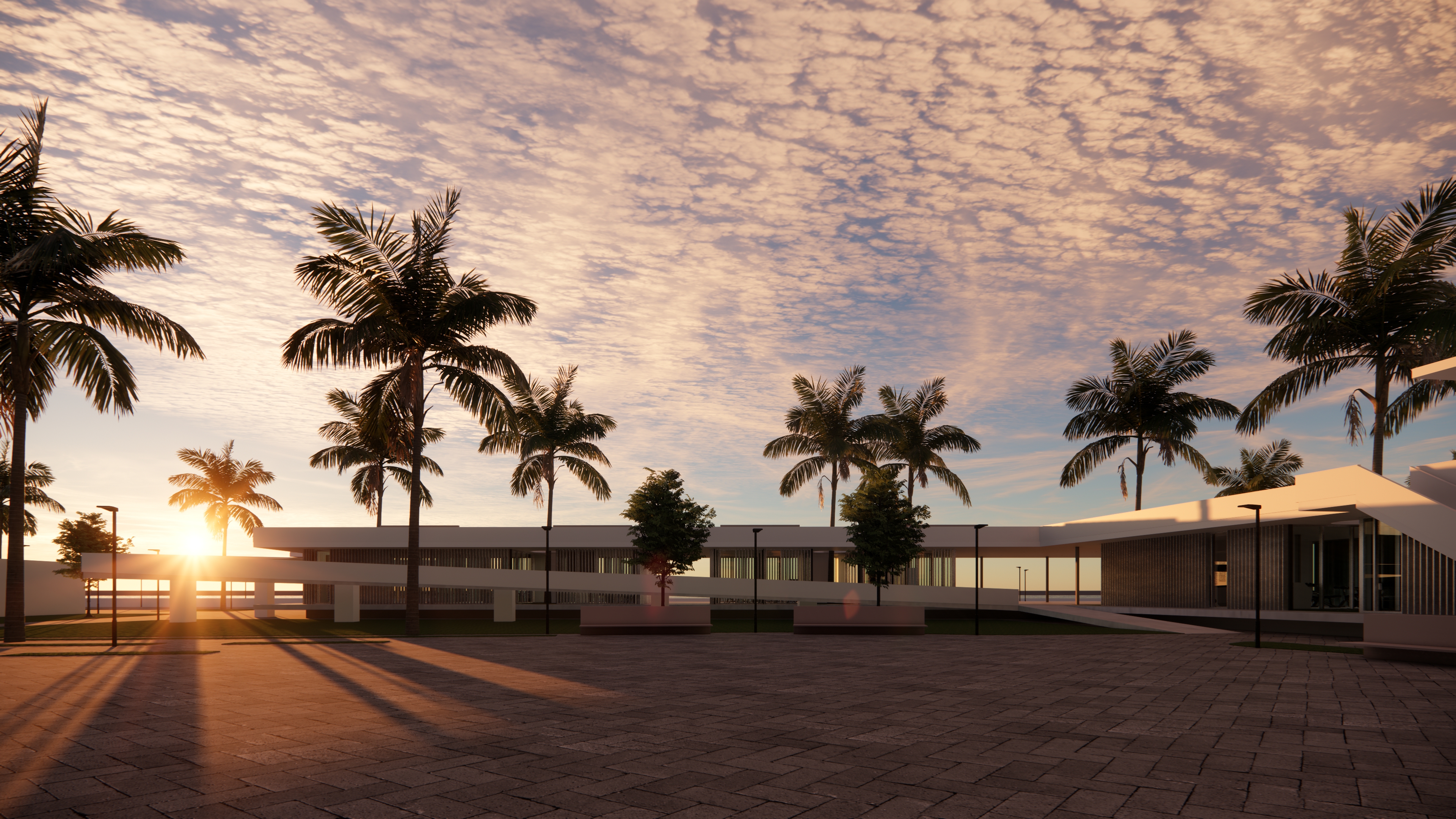 Dicha escuela nace a partir de dos planos horizontales, uno levantado a 1 m del suelo y otro situado a una altura de 3,8 m del anterior, que provocan con ayuda del vidrio como elemento vertical una transición continua y hace que el edificio sea totalmente pasante de oeste a este. Destacamos una división del edificio en 4 bloques: aularios más enfermería, zona administrativa, zona practica que se encuentran en planta baja y por último el bloque residencial que se encuentra en la primera planta. En esta planta también surge a partir de un corredor ascendente de la planta inferior, una cubierta transitable que hace la función de terraza y mirador para los turistas y residentes de la zona.