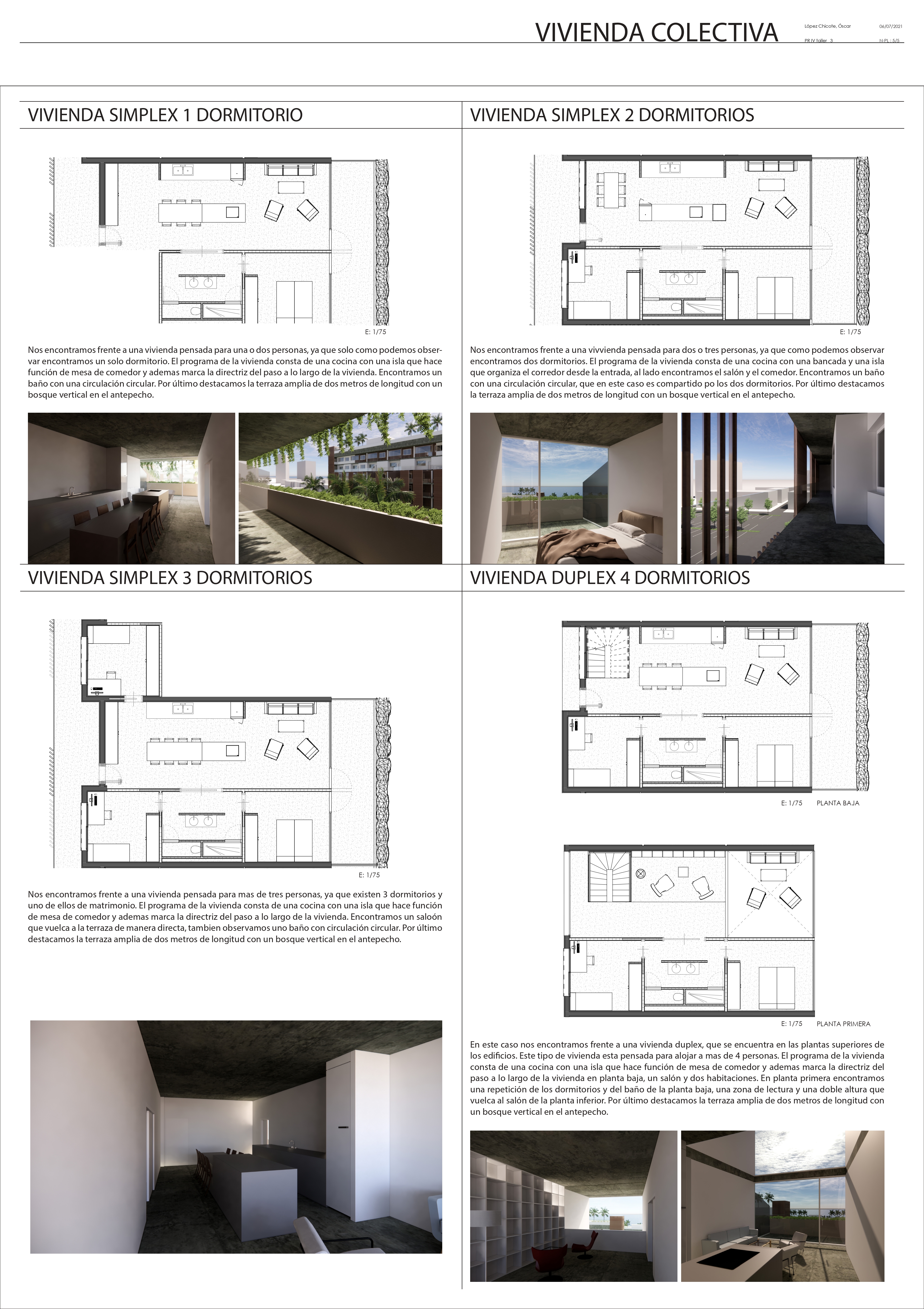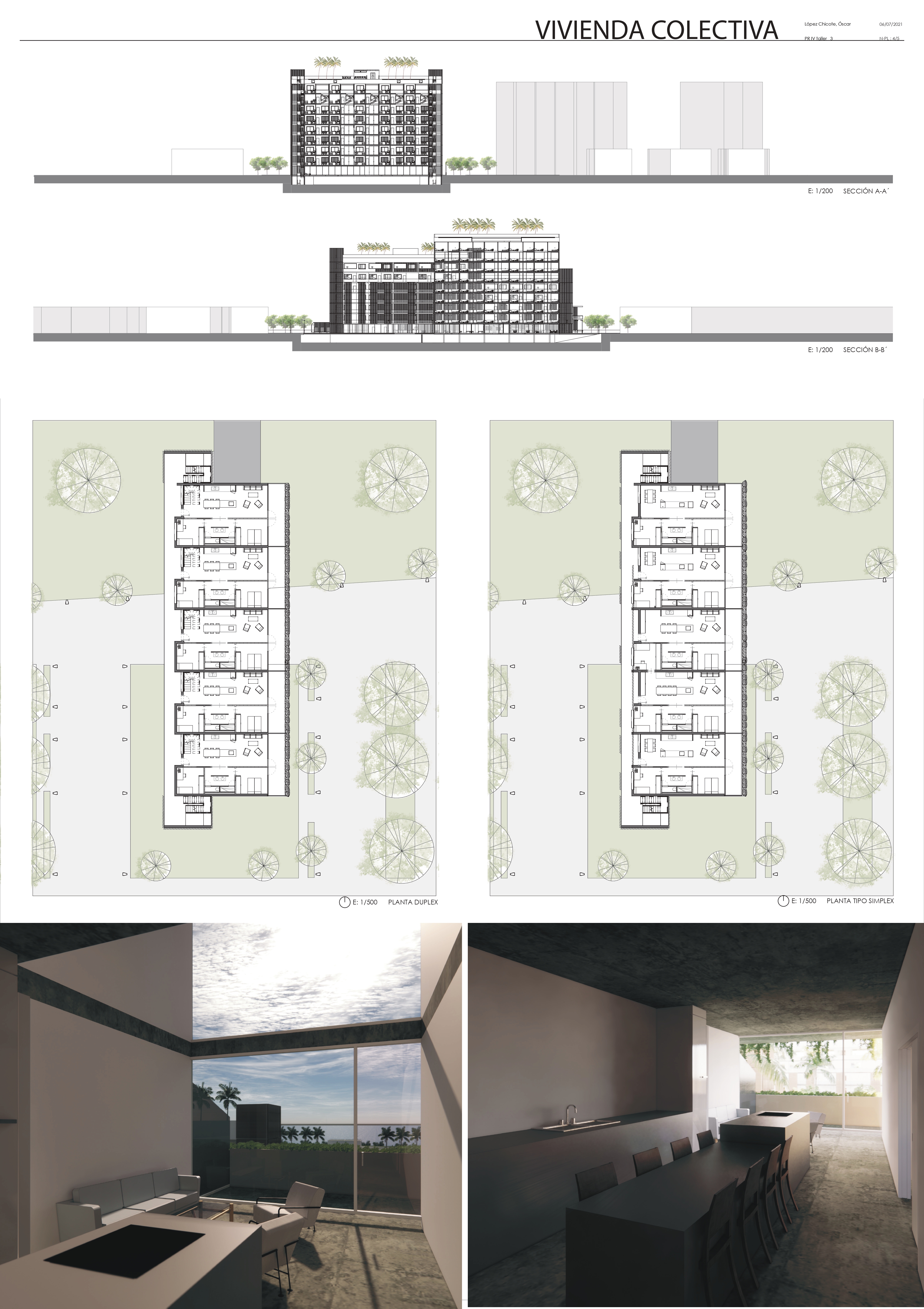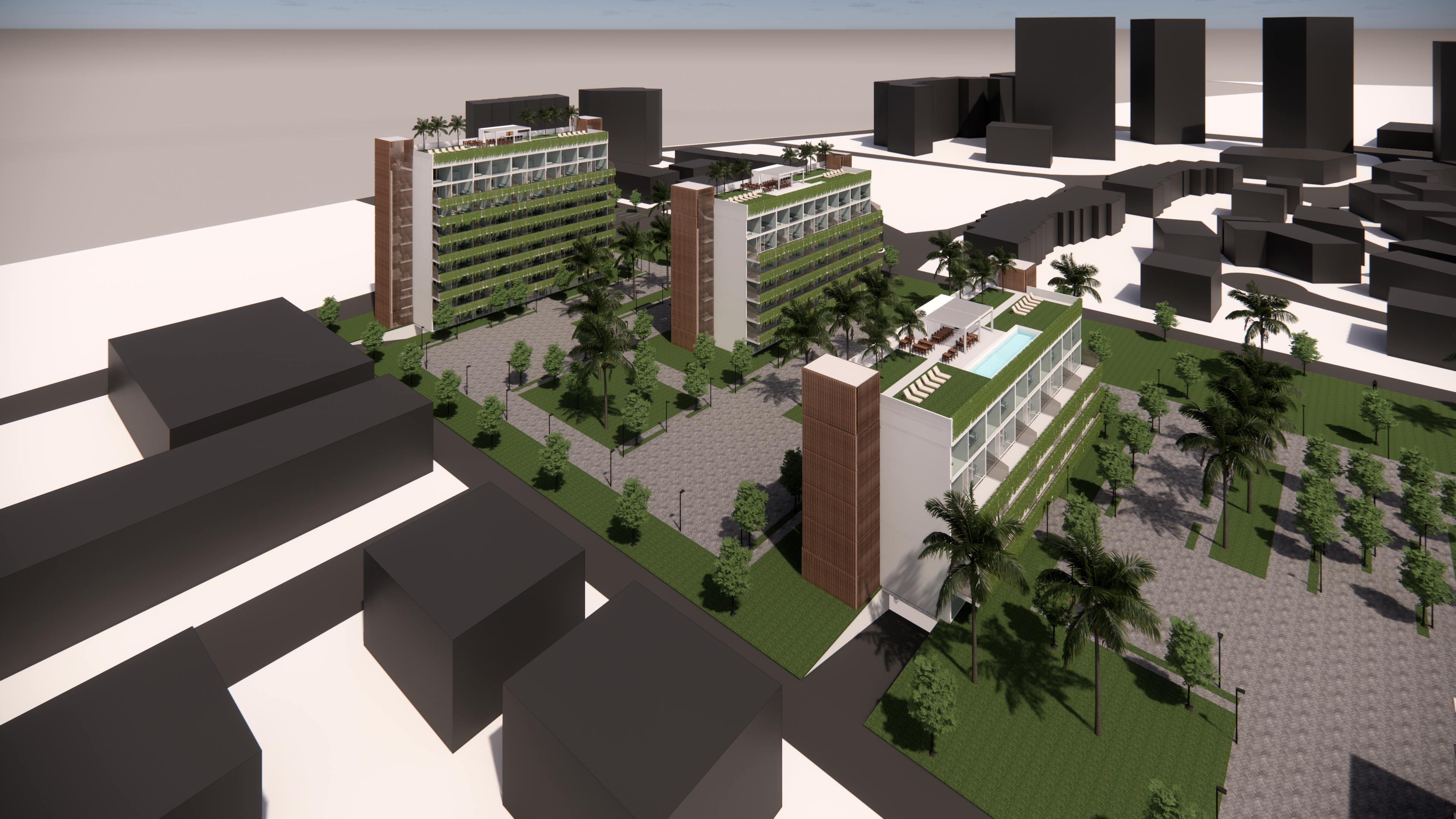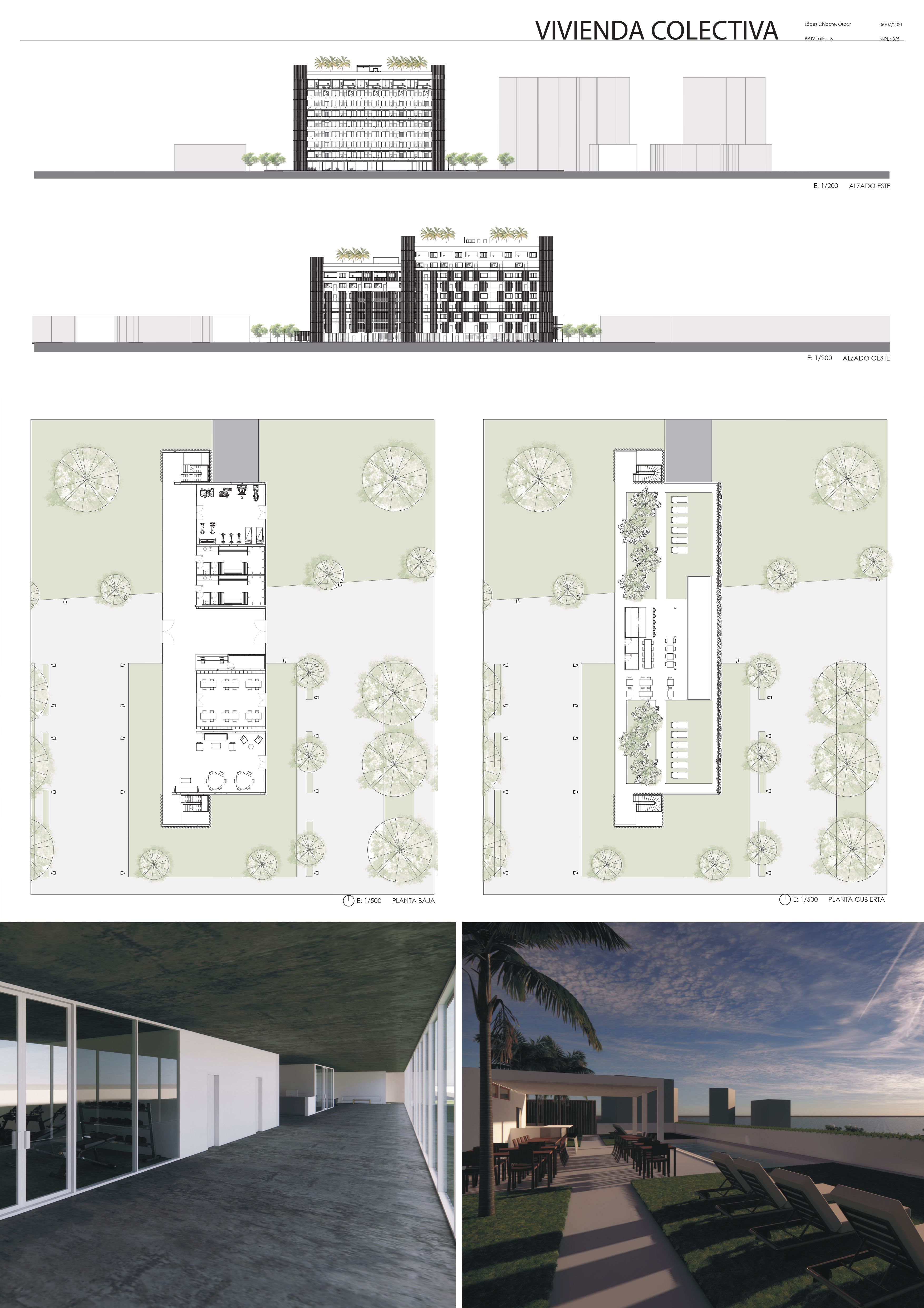 Estos tres bloques de vivienda crean diferentes espacios públicos que hacen de nexo entre estos. Como podemos observar se encuentran en altura descendente, disminuyendo progresivamente a la vez que se van acercando a la playa y de esta manera sigue una correspondencia con la altura planteada en la escuela de deportes náuticos y la posta sanitaria.