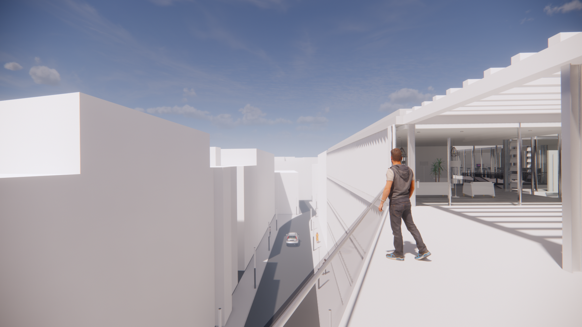 En cuanto al núcleo vertical, será muy abierto y abriéndose a los dos patios, de esta manera se consigue mucha luz natural por todo el núcleo. Los patios separan cada uno de estos bloques en dos, de esta manera el programa de colectivo se puede separar dependiendo de sus funciones.